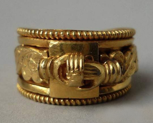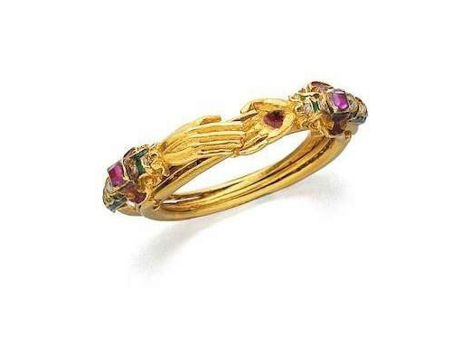 The "Fede ring" shape is a tightly clasped hand, symbolizing "friendship, love, and loyalty."
